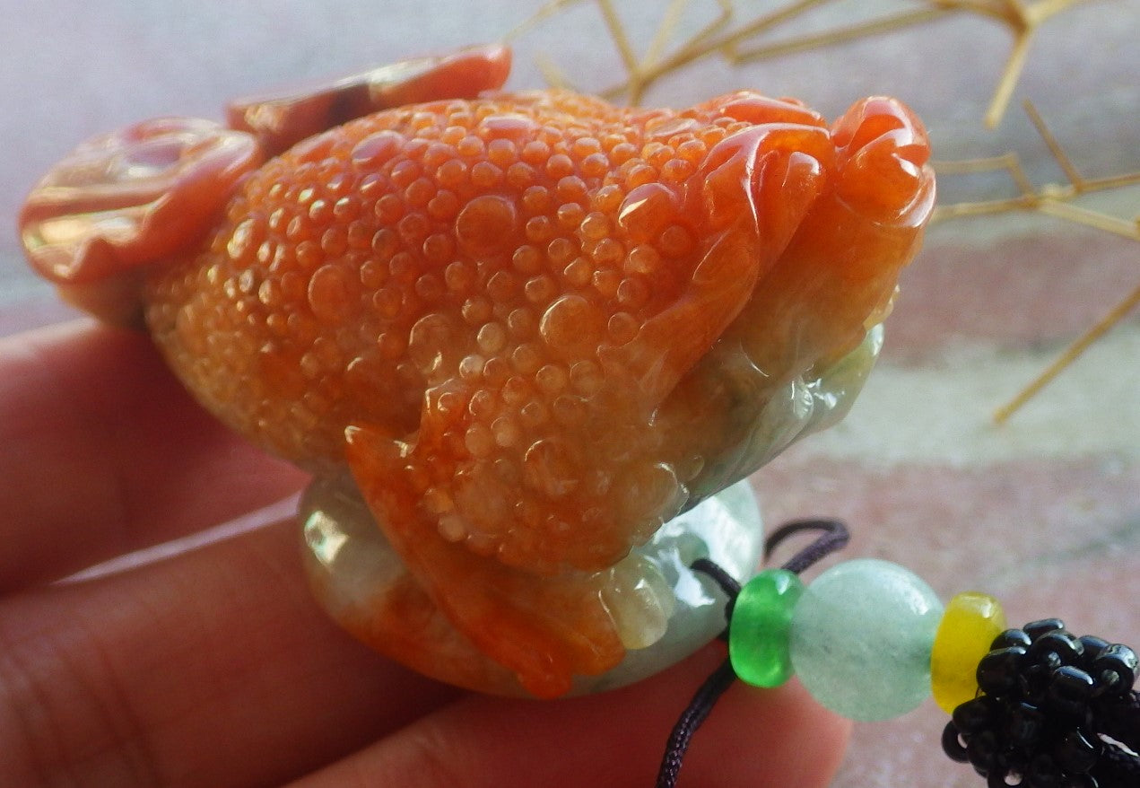 Certified Hand Carved Natural Myanmar Burma A Jade Jadeite Frog Toad Ruyi Money Coin Pendant Necklace